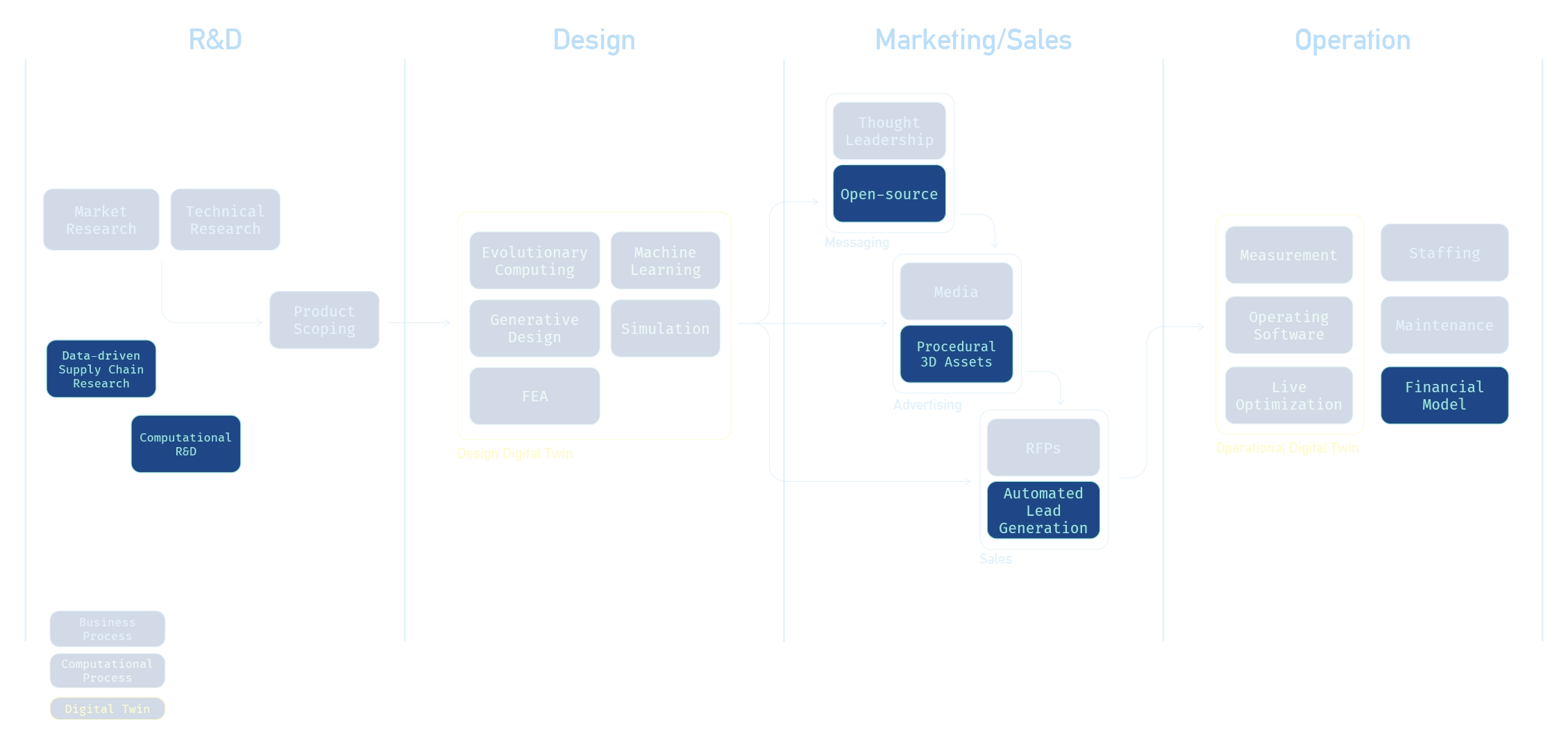 These computational methods will often be connected by digital twins: 3D representations of live data, most commonly tailored for use in design and operational processes.