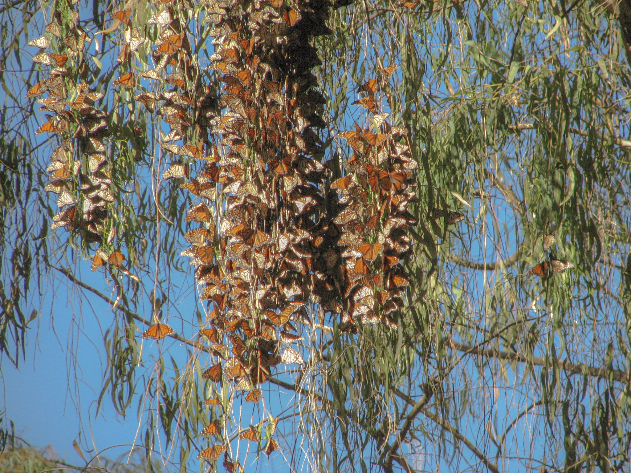 This super generation travels together, becoming more densely packed the further south it gets. As this happens, colonies of monarchs will roost together in trees throughout the US: most notably along the I35 interstate highway.