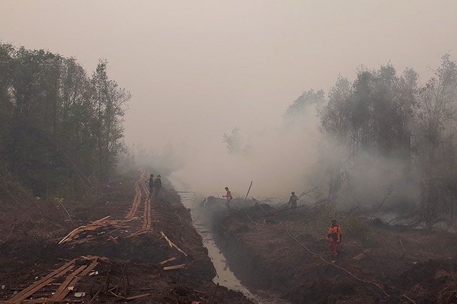 The ongoing practice of slash and burn, coupled with the dry conditions of the particularly late 2015 El Nino event, sparks some of the worst forest fires the region has ever seen. The World Bank estimates that 2.6 million hectares of Indonesian land burned in 2015 alone, and the fires take more than 100,000 lives. The resulting haze affects a number of South East asian countries, spiking respiratory and cardiovascular conditions.